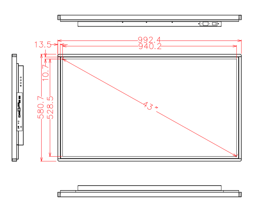 整机外形尺寸 | 988.5mm *578.0mm*58.5mm | |