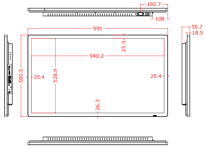 整机外形尺寸 | 991.0mm *580.5mm*55.7mm |