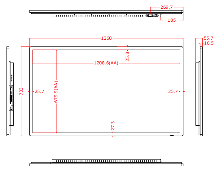 整机外形尺寸 | 1260mm *733mm*55.7mm |